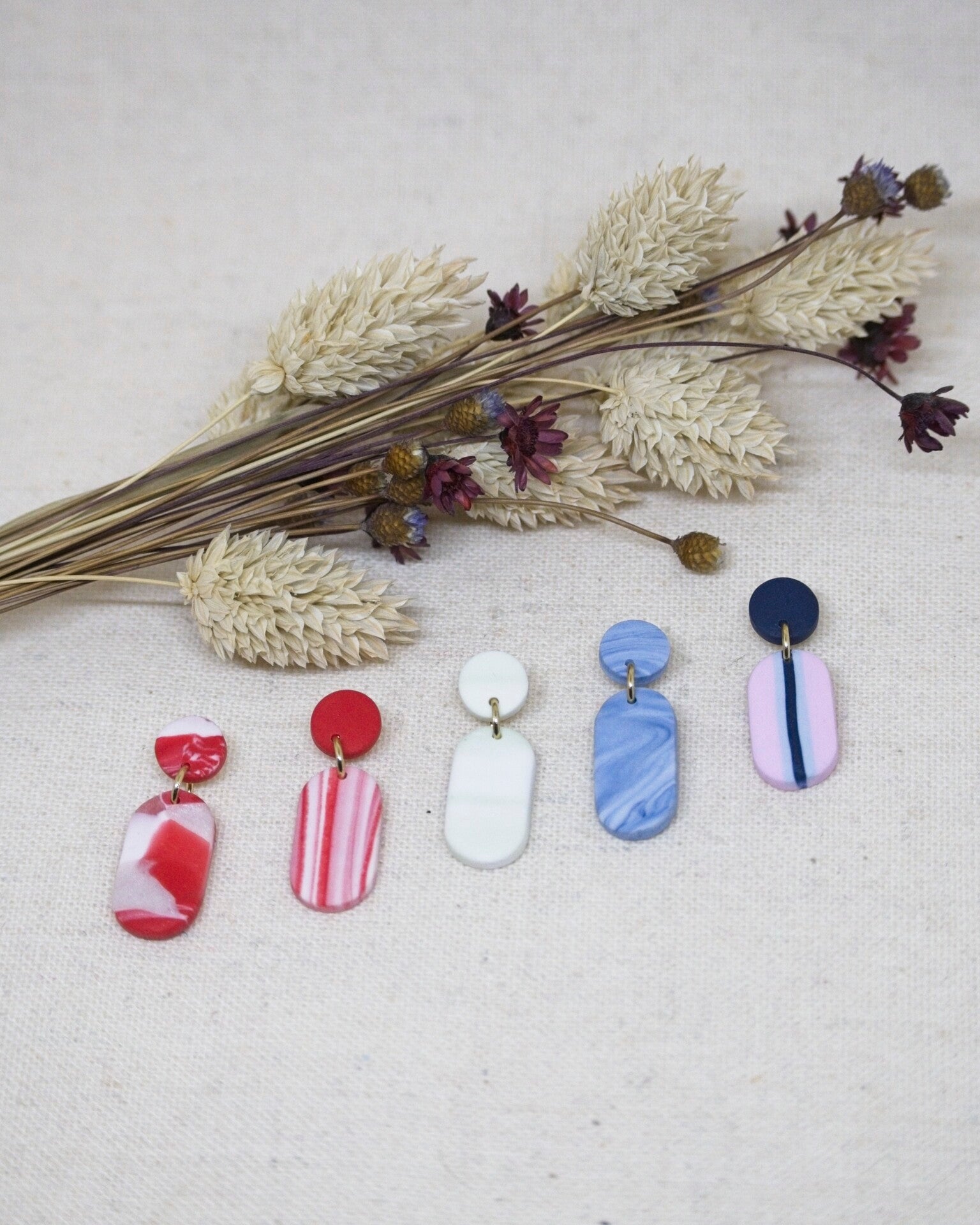 Alle oorbellen zijn gemaakt uit polymeer klei. Dit materiaal is super licht, zelfs een groot paar oorbellen weegt slechts enkele gram! Daardoor kan je heel de dag met je oorbellen stralen, zonder een zwaar gevoel te ervaren. Het materiaal van de stekertjes is standaard roestvrij staal, een hypoallergeen materiaal, speciaal voor gevoelige oren.