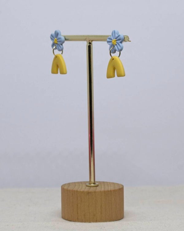 Vrolijke oorbellen met bloemetjes en twee kleuren.